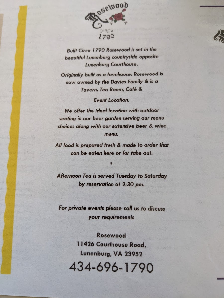 Welcome to Rosewood, a charming café nestled at 11426 Courthouse Rd, Lunenburg, VA. Here, the menu is a delightful blend of comfort and creativity, designed to cater to every palate.